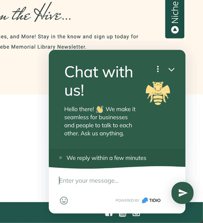 - The "Niche Academy" widget offers an intro and links to various resources. The widget has been styled to match the website theme, although the sticky tab at the right side of screen is not optimally positioned.